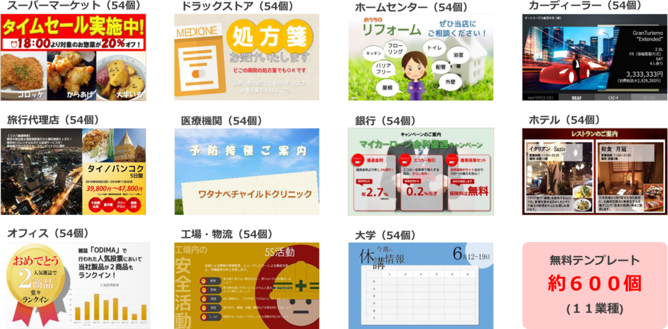 各業種向けのテンプレート(無料)