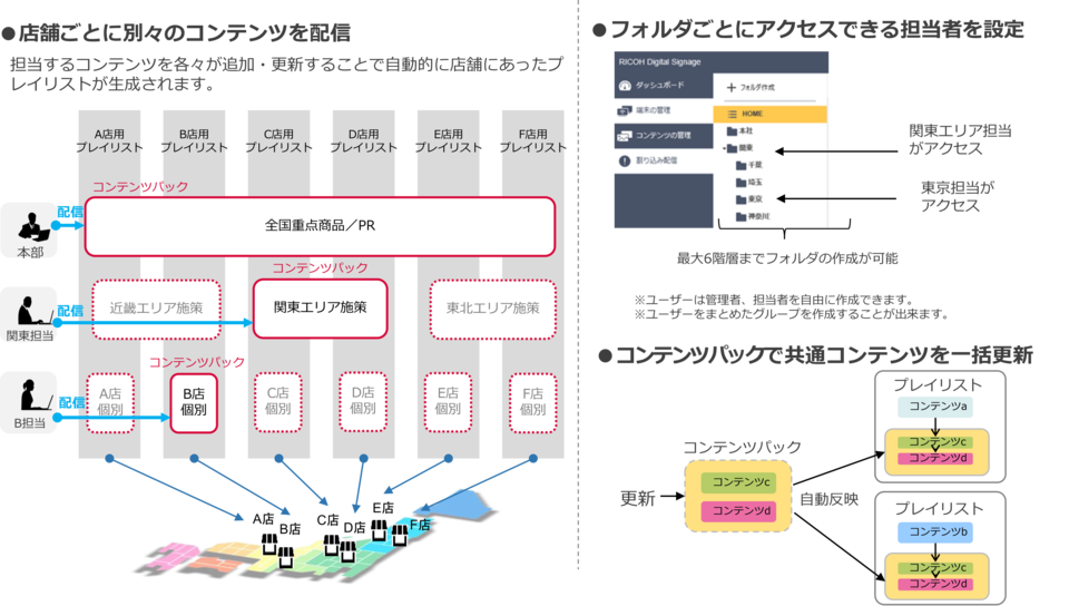 複数の担当者でコンテンツの配信を行う場合には、アクセス権限やコンテンツパックを使用す