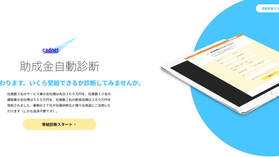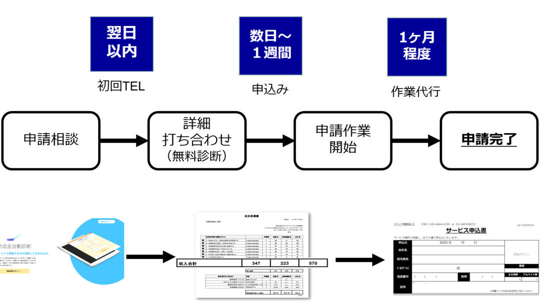 申請のサポートは有料サービスとなりますが、自動診断とその後のヒアリングまでは無料ですので、是非ご活用いただければと思います。