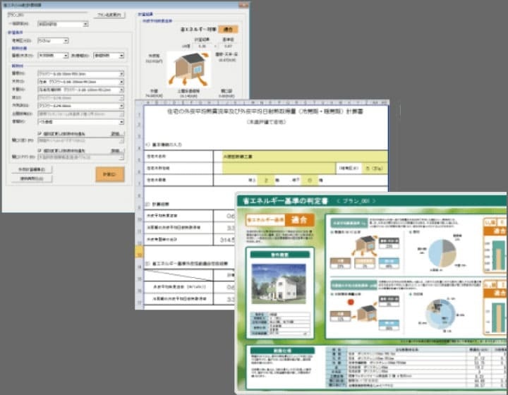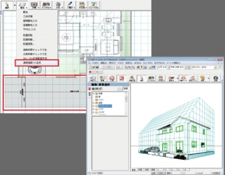 長期優良オプションを追加することで性能チェックシート・水平構面伏せ図・階段面積等が出力できます。JWCADとダブルクリックするだけでシームレスに連携し、レイア分けも自動で行われるのでJWCADを使用している設計者に万能の機能です。その他設計者向けオプションとして、天空率計算・環境シミュレ―ション(風の流れ)などの機能を追加可能です。